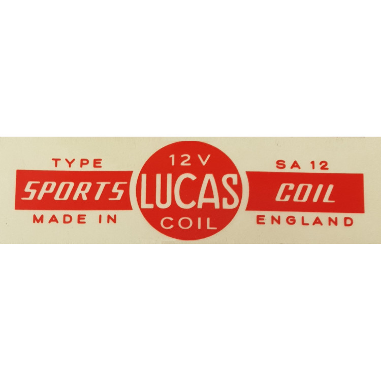 9337 x 1. Period correct, red LUCAS 'SPORTS COIL' ignition coil sticker. For the correct look on an XK sports coil.