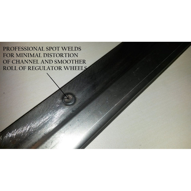 1 x 2382 Window Glass Lift Channel, 16" Long. Here we have our product made for us to exact original, heavy duty spec. construction. Manufactured for us by a top sheet metal bending company, we can truly say this product is engineered perfectly with exact spot welds so as not to distort the run channel as other welding/ braising methods do. Engineering tolerance is +/- 0.2mm run out i.e a near perfect parallel channel. This will give your window winder the smoothest operation as it lifts/drops.