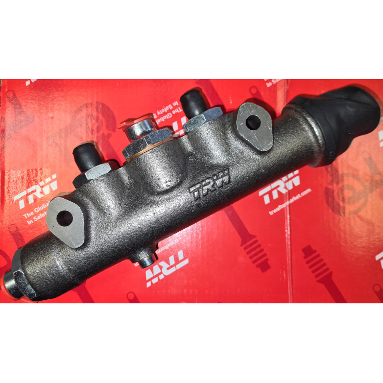 3620 x 1. A brand new TRW brand, replacement XK120 Tandem Master Cylinder. Only correct for the Later XK120 braking system (April 1952 onwards), and as it is longer requires its own specific mount plate (3123). ( Jaguar later reverted back to single line master cylinder using the XK120 style v-banjo in the XK140, as the Tandem system is considered to be 'quirky' and difficult to set up.) SEE NOTES BELOW. Jaguar pioneered this early dual line brake system, but it is difficult to set up and great care has to be taken not to bend the delicate internal needles or 'Tilt Valves' (No Longer Available) whilst servicing (or affected line may lock up). Original factory fited cylinders are easily identified as they bear the 'Qualcast' brand logo. Original Ref. C6712. Lockheed Ref. 31526