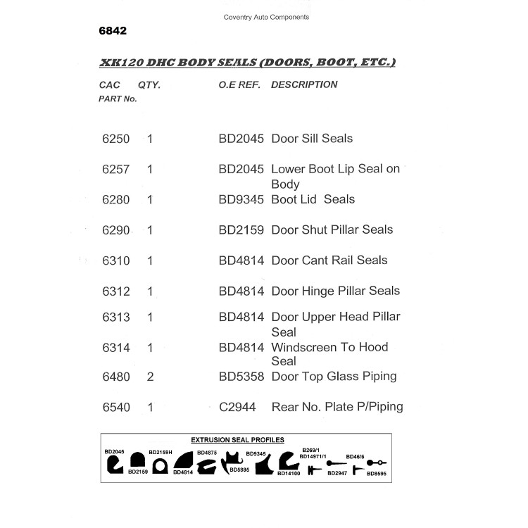 6842. XK120 DHC. Drop Head Coupe. Superior Extruded Body Weather Seal Kit