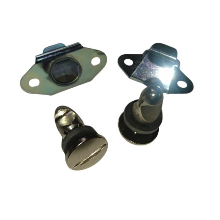 2515 x 1 kit of 6 pieces. XK120 Drop Head Coupe / Fixed Head Coupe . The Larger, push to lock ‘Oddie’, ¼-turn release Fastener Set for battery cover panel. 16mm diameter, slot headed stud x 2 , catchers x 2 & release rings x2 fittings for the Battery Cover Wooden panel at back of seats.