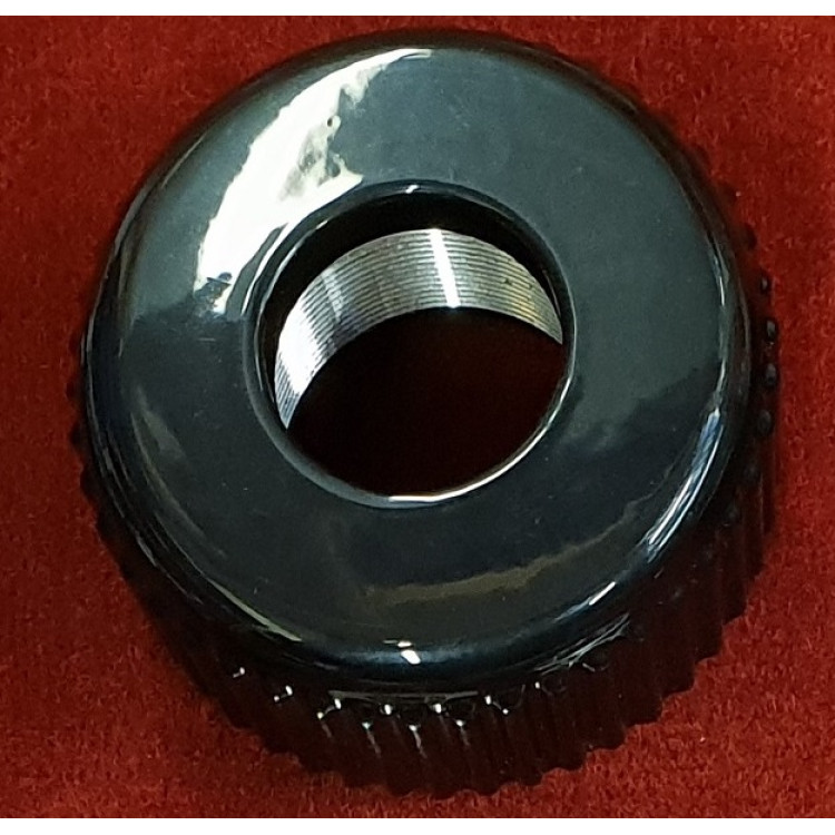 1 x 4227. Our superb quality XK150 Steering Column (hand operated) Lock Nut. This is the version of the nut with the flat top and flat base for vehicles without column mounted indicator lever. Beautifully machined and finished in tough black powder coat for a long life. Often damaged by the need to remove originals with mechanical grips!