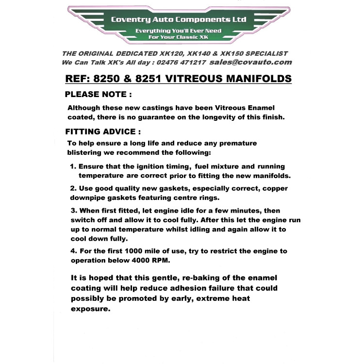 8251. XK120 / XK140 / XK150 Rear Exhaust Manifold Black Vitreous Enamel To Cylinder Head. C2214. C13823