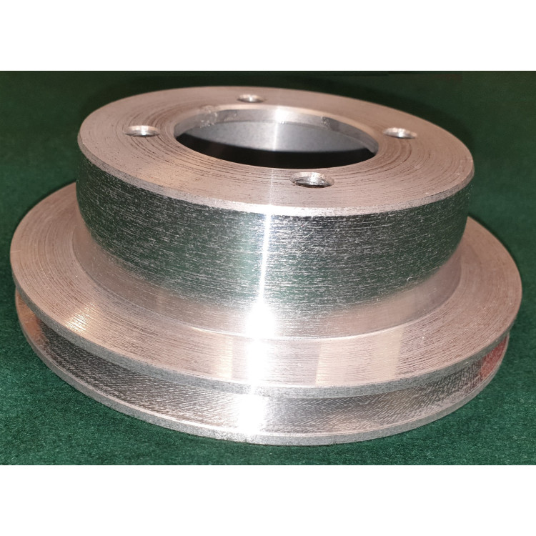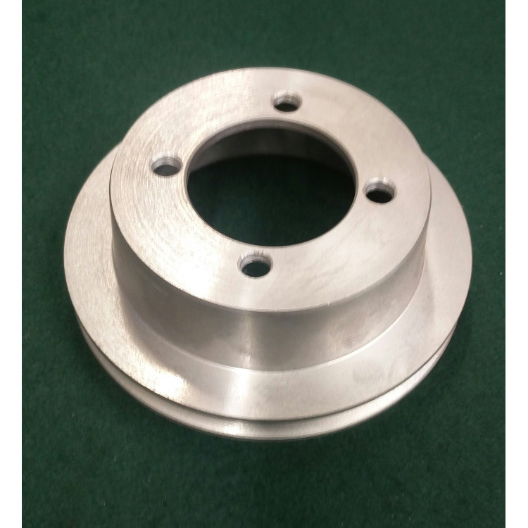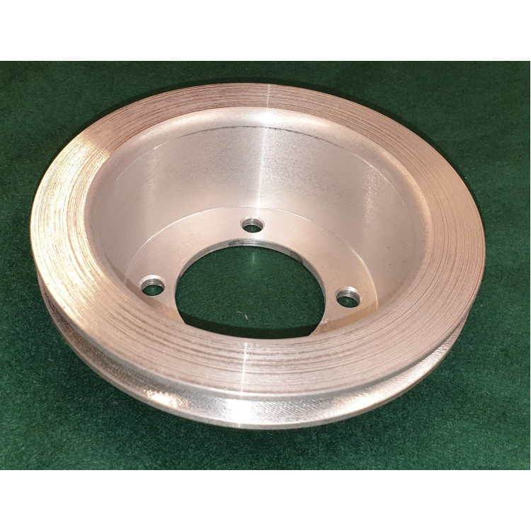 1 x New cast & machined Aluminium XK140 & XK150 Early Waterpump Pulley. These aluminium (waterpump and crankshaft) pullies are aluminium and so do wear away more than an equivalent steel pulley would, making the belt drop further into the 'V' making the belt appear to stretch more than it actually has! If a standard 1000mm long belt seems too long to adjust the slack out of, look at pulley wear as a culprit. We do make a longer dynamo pulley adjuster to re-adjust for this wear problem. SEE 5784A