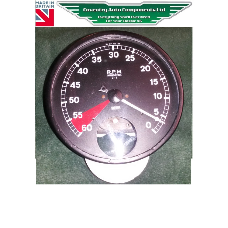 8612 LATE. EXCHANGE XK140 LATE SPEC. REV. COUNTER (TACHOMETER). SMITHS NUMBER 51-117-102-04 with 'RED (BROWN) LINE QUADRANT ' AT 5500 RPM. THIS IS FOR A REBUILD EXCHANGE UNIT OR TO HAVE YOUR UNIT SENT AWAY TO BE REBUILT, WHICH WILL ENTAIL A LEAD TIME.Fully restored by our Smiths Industries agent, offered for LIKE-FOR-LIKE service exchange. We can fix up most gauges, as long as it has correct mechanism and pointer. Any extra parts required will entail ADDITIONAL CHARGES. NOTE : IF YOUR UNIT IS NOT SUITABLE TO EXCHANGE SEE OUR NEW OUTRIGHT SALE GAUGES.