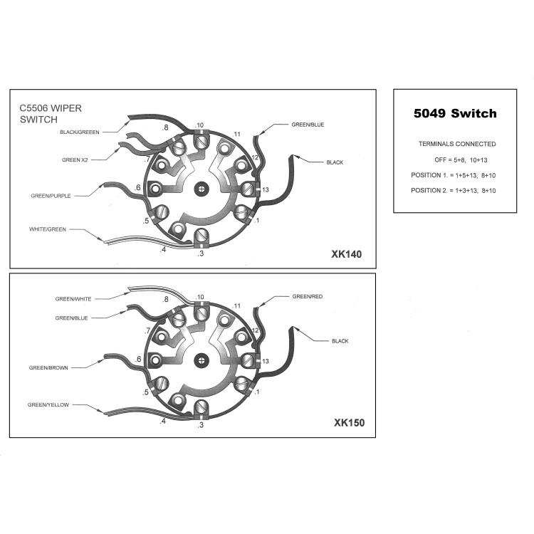 5049 x 1. NEW XK140 & XK150 2- Speed Wiper Switch , bolts into metal dashboard chassis. Supplied with wiring data for this switch as shown. Original Lucas Ref. 31427 . Original C5506