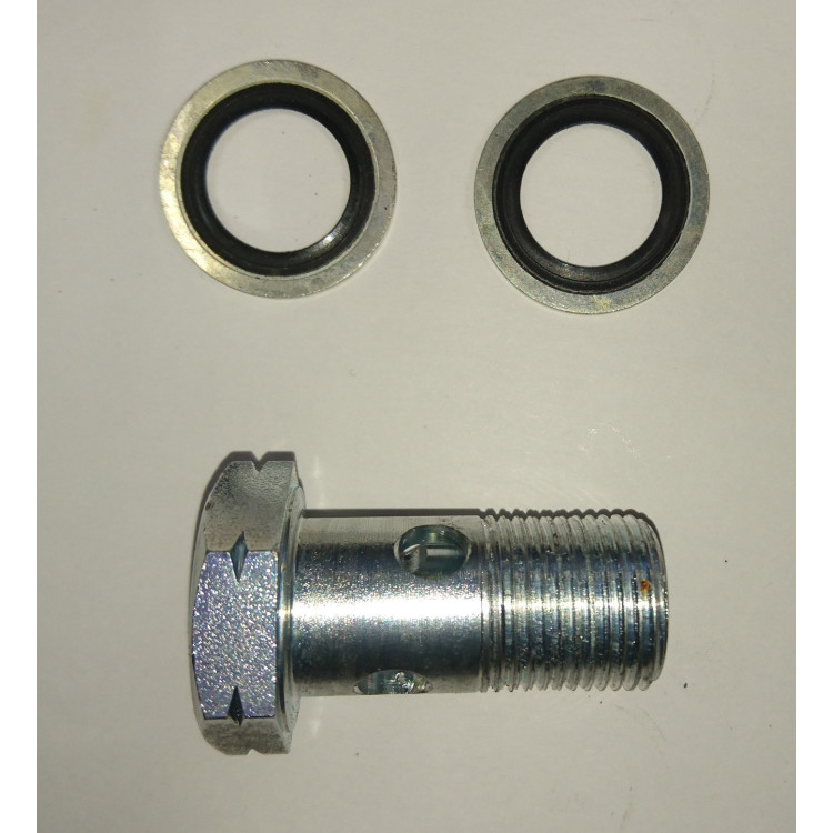 8326A x 1. BANJO BOLT for fitting XK120 Choke Starter Pipe into manifold adaptor flange casting. To fasten into the special, bolt-on UNF threaded casting ( 8346 ) on the underside of the unique XK120 manifold. Holds anti blow-back valve (8328) and special spring(8328S These are near impossble to find in this large UNF size now so we have had them machined by our own workshops. Supplied with  2 x washers or seals.
