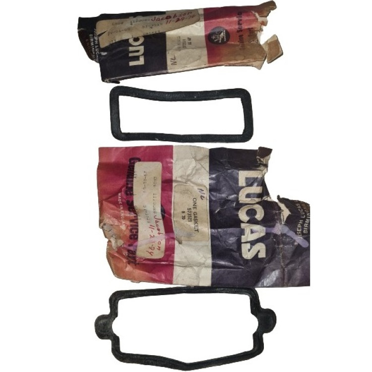 6721PLP x 1. A great, totally one-off find in our stores. One for the collector, a pair of original LUCAS bagged seals, to fit inside the chrome plated XK150 reverse light / number plate plinth (stingray). Condition as shown. Rubber still piable.