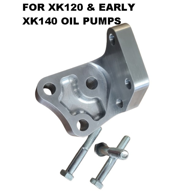 SE842 x 1 Kit. This is a cleverly designed and CNC cut conversion piece that allows the rare XK120 Oil Pump (C3384 / C4715) & Early XK140 Oil pumps (C7484) to be discarded and the LATER DESIGN XK140 / XK150 oil pump (SEE: SE830) to allow all the benefits of the higher flow, later pumps. This kit comes with the 3 mounting bolts required and fitting instructions for replacing XK120 & Early XK140 Oil Pumps with the Later Rotor Design Oil Pump. The front cap may require a slight radius adding for the adaptor to fit correctly (early blocks may vary) and the pump drive shaft may require 0.25" shaving off (0.125" each end). Bigger bore pipes or pipe adaptors will be required to suit your new oil pump outlets , SEE OPTIONS : SE830P140