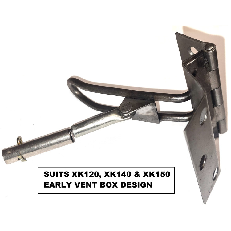 CAC2-16L. XK120 Wing Vent Box Left Hand Side INNER MECHANISM & HINGE only. A new quality U.K. MANUFACTURED panel, made to order. NOTE: METAL MAY NOT HAVE PASSIVATE FINISH.