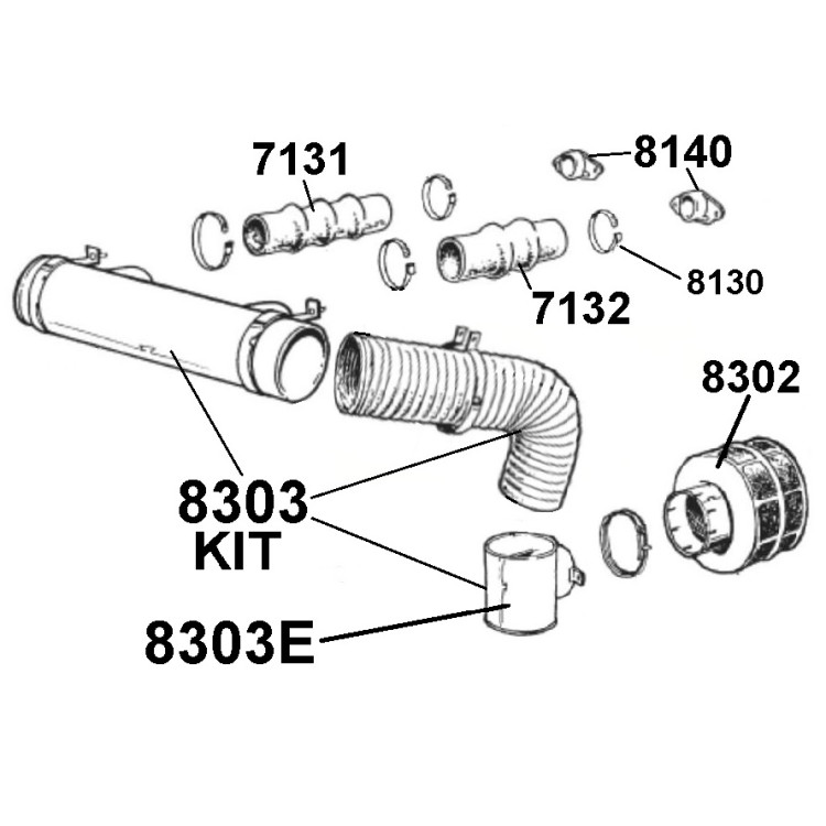 8303. XK120 DHC & FHC Air Filter Cleaner Intake Box, Pipe & Elbow KIT. C5794. C5799. C5709