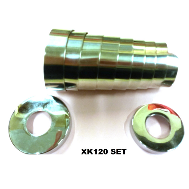 2210K2 (inc. 3 pieces). A beautiful steering column volute spring & pair of caps for the XK120. Used for concealing the adjustable splined section of the XK120 steering column. Manufactured for us by a UK spring specialist in a sprung, stainless steel, polished to shine like the original chrome plated version (that slowly became un-sprung over time). We have bundled it with the two correect chrome end caps for the XK120.