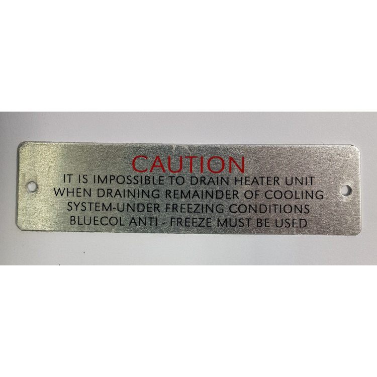 9390 x 1. Standard later design of printed Aluminium Heater Caution Plate.