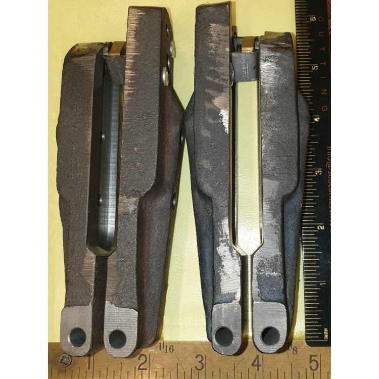 3652 x 1 set of 4 pcs. Our superb new, Jaguar XK150 Handbrake Caliper Fingers Set or Pad Carriers. These are not made of the weaker aluminium, so will not snap in harsh use, they are SG Steel castings. A quality XK150 Handbrake Caliper Finger Set (for use with our 3490, wedge shaped, bifurcated rivet, handbrake pad set).