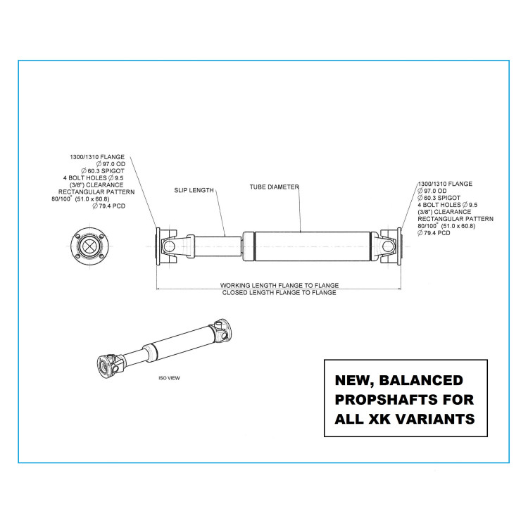 4505 x 1. New XK140 & XK150 Auto Propshaft complete flange to flange (35.5" closed) and machine balanced to 3000 RPM. To suit the rare XK140 & XK150 Borg Warner DG.250/M Automatic gearbox equipped vehicles only. Original Number C8833