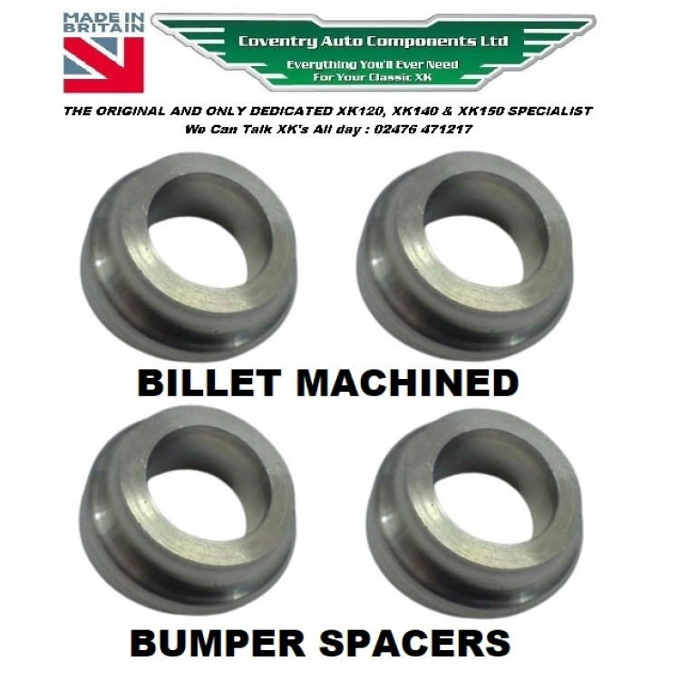 1390S x 1 Car Set of 4 pieces. The XK120 Aluminium Angled Spacers for securing the Front Bumper bars behind the front Wing.This shaped, angled spacer behind the front wing sets the bumper spacers solidly through the wing and then solidly to the bumper cowhorn, for a rigid bumper support through the body to the chassis, in case of an impact. (matches to 1310 outer chromed washer, that is seen). 4 are required per car. These are Not the low quality cast versions, but high grade , beautifully machined billet aluminium for strength and long life,. Far superior to originals as they are machined for us out of high grade, solid aluminium billet, not 'monkey metal' / Mazak which corrodes badly. There are 4 used per car so we are providing a full car SET here as a kit. Original reference C3225.