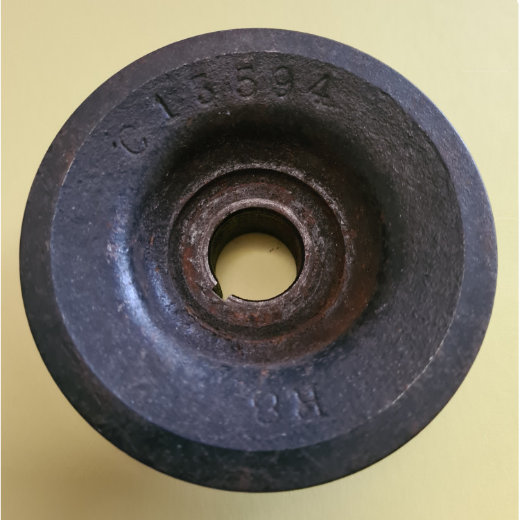 8479L x 1. An original Lucas pulley for XK150 LATE, wider, offset Dynamo pulley for 13mm or 1/2" wide fan belt and is stamped as C13594 as it is an original LUCAS pulley. This is an over-run pulley with outside diameter of 80mm which runs the dynamo faster than on an XK140 or Early XK150.